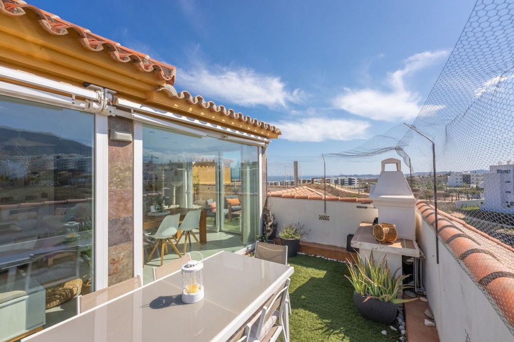 - Refurbished modern penthouse, south-south/west orientation, located in the exclusive urbanization Reserva del Higuerón. Consits of hall entrance, 3 bedrooms and 2 bathrooms, wooden floors throughtout all the apartment, spacious living-dining room with large glass windows, open plan kitchen fully furnished and equipped with electricial appliances. All bedrooms with fitted wardrobes and access to the terrace. Main bedroom with ensuite bathroom and walk-in closet. 136m2 of terrace with panaromic views of the Mediterranean sea and Fuengirola Bay. Includes a parking space and storage room. Spectacular communal areas, with two large swimming pools, extensive green areas and one artificial lake.