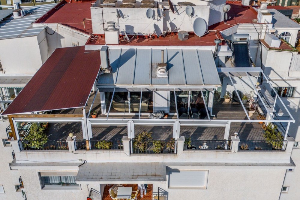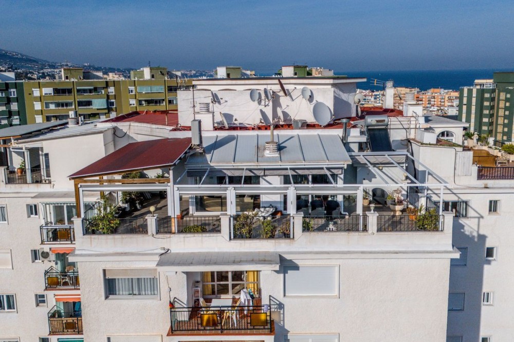 - Penthouse, Fuengirola, Costa del Sol. 3 Bedrooms, 2 Bathrooms, Built 198 m², Terrace 154 m². Setting : Town, Beachside, Close To Port, Close To Shops, Close To Sea, Close To Town, Close To Schools, Close To Marina, Urbanisation. Orientation : South, South West. Condition : Excellent. Pool : Communal. Climate Control : Air Conditioning, Hot A/C, Cold A/C. Views : Sea, Mountain, Panoramic, Pool. Features : Covered Terrace, Lift, Fitted Wardrobes, Near Transport, Private Terrace, Access for people with reduced mobility, Marble Flooring, Double Glazing, Fiber Optic. Furniture : Fully Furnished. Kitchen : Fully Fitted. Garden : Communal. Security : Gated Complex, Entry Phone, 24 Hour Security. Parking : Communal. Utilities : Electricity, Telephone. Category : Holiday Homes, Investment, Luxury, Resale, Contemporary.