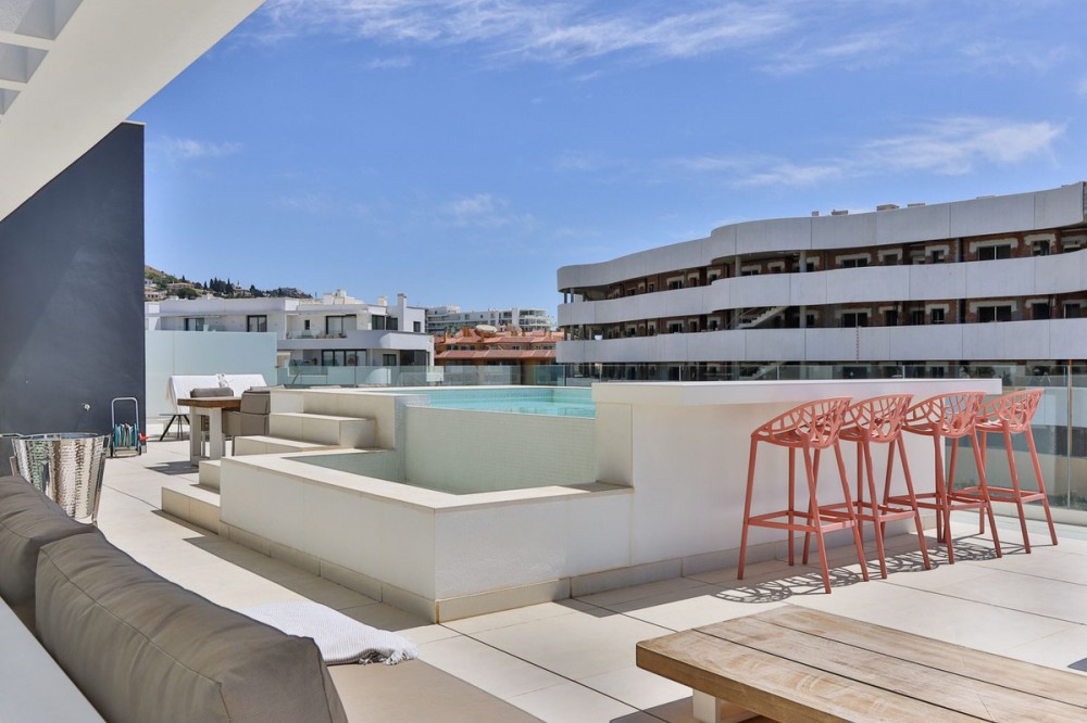 - Welcome to luxury living at its finest in Higueron This exquisite penthouse offers the best sea views that stretch from south to west. With a prime location this property ensures a lifestyle of opulence and convenience. The penthouse features 3 bedrooms, including a lavish ensuite master bedroom, and 2 bathrooms, complementec by a separate guest toilet for added convenience. The fully fitted kitchen is a culinary enthusiast's dream, equipped with modern appliances and designed for both style and functionality with both American type fridge and wine fridge Step into a world of relaxation and entertainment with a private plunge pool that overlooks the mesmerizing sea. Enjoy the seamless indoor-outdoor flow, as automatic electric awnings and sun blinds provide shade when needed. In winter you will even be able to enjoy the underfloor heating in all floors. The property comes with 2 (one with electric charger) underground parking spaces for your convenience, along with large storage areas that can accommodate bikes, Moto etc, catering to your every need. This penthouse goes beyond the ordinary, offering an array of facilities within the Higueron West community, including a gym, Padel and tennis courts, spa facilities, and a shuttle service to the exclusive Higueron Beach bar. The lifestyle amenities ensure that every day is filled with leisure and well-being The location is unbeatable, with easy access to nearby beaches, renowned restaurants, and a quick connection to the train to Malaga airport. Enjoy the luxury of being just 15 minutes from Malaga and 20 minutes from the vibrant city of Marbella. Furniture is optional, allowing you to personalize this stunning penthouse to your taste. Don't miss the opportunity to own a piece of paradise in Higueron West where luxury meets lifestyle in perfect harmony…
