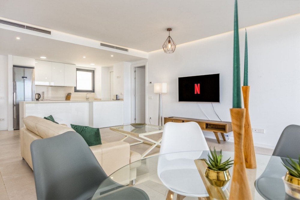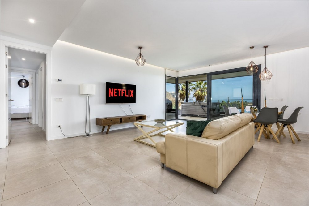 - Imagine owning a stunning, fully furnished 3-bedroom apartment just 500 meters from the beach in the exclusive Reserva del Higueron community. This property offers not just a home, but a luxurious lifestyle with panoramic sea views and easy access to beach bars, restaurants, and shops, all within walking distance. This apartment features 3 spacious bedrooms, 2 modern bathrooms, and an open-concept living area that leads to a magnificent 63m² terrace. The terrace is perfect for entertaining, with a built-in barbeque and a private jacuzzi where you can relax and enjoy the breathtaking views of the Fuengirola coastline. The apartment comes fully furnished and is equipped with Wi-Fi, heating, and air conditioning for year-round comfort. The community offers top-notch amenities, including two swimming pools, a spa with a sauna and steam room, a gym, and a social room for gatherings. Located between Fuengirola and Benalmadena, this apartment is just a ten-minute drive or a thirty-minute train ride from Malaga International Airport. There’s also a free shuttle service within the community, making it easy to reach the commercial centre, sports club, and beach. This property isn’t just a luxurious retreat—it’s a smart investment with excellent rental income. Don’t miss the chance to own a piece of paradise in one of Costa del Sol’s most sought-after locations, fully furnished and ready for you to enjoy!