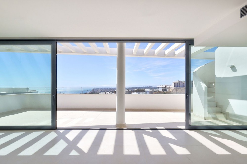 - This magnificent penthouse in El Higuerón offers exclusive design and breathtaking views in a prestigious gated community. The property features three bedrooms, two bathrooms (one ensuite), and a spacious open-plan living room and kitchen. The living room opens to a large sunny terrace which is partially covered that takes you to a rooftop 50.43m2 solarium with panoramic views to the bay with plenty of space to enjoy the best weather in Europe. Surrounded by top-tier amenities, leisure options, and gourmet dining, its prime location enhances the luxury living experience. Residents enjoy first-class facilities, including two infinity pools, a cutting-edge gym, spa, paddle tennis courts, and a private putting green. This exclusive apartment in Higueron west 217 in Fuengirola, is 1.6km from Torreblanca Beach. The property has 2 car parking spaces along with a storage room.