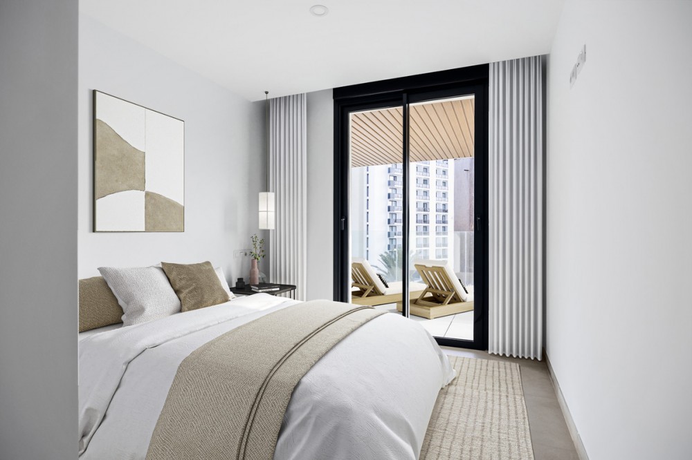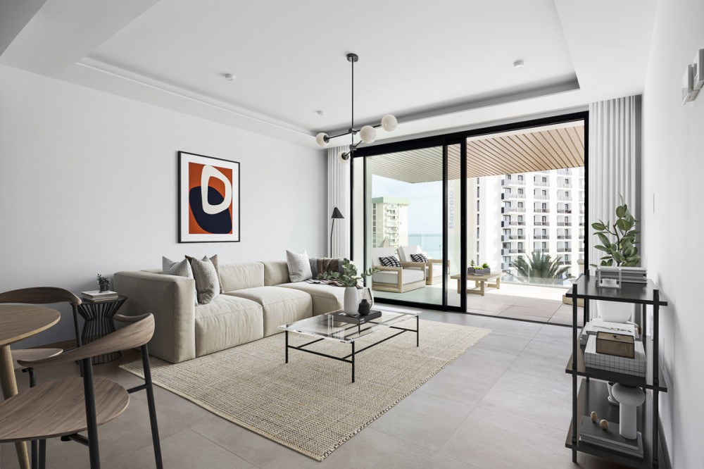 - Brand new resale opportunity! Introducing an unparalleled opportunity to own a brand new, never-before-lived-in apartment a few meters from the beach. This luxurious residence boasts a spacious open floor plan, adorned with high-quality materials and fresh, bright colors that create a vibrant and welcoming atmosphere. The east-facing apartment is bathed in natural light, thanks to the expansive windows and sliding doors that seamlessly connect to a wrap-around terrace, offering stunning sea and mountain views and an ideal space for relaxation and entertainment. Every inch of this apartment has been meticulously designed with top-notch finishes, ensuring a sophisticated and modern living experience. Despite its prime location where a car might not be necessary, the apartment conveniently includes a garage and storage room. Residents of this luxury complex have access to an array of exclusive amenities, including both indoor and outdoor pools, a spa featuring steam and Finnish saunas, a state-of-the-art gym, a cinema room, and a co-working space. The unbeatable location places you just steps away from the beach and Paseo Maritimo, with the added convenience of being a mere five-minute stroll to Miramar. This is not just a place to live, but a lifestyle to be embraced. Contact us today to schedule a viewing!