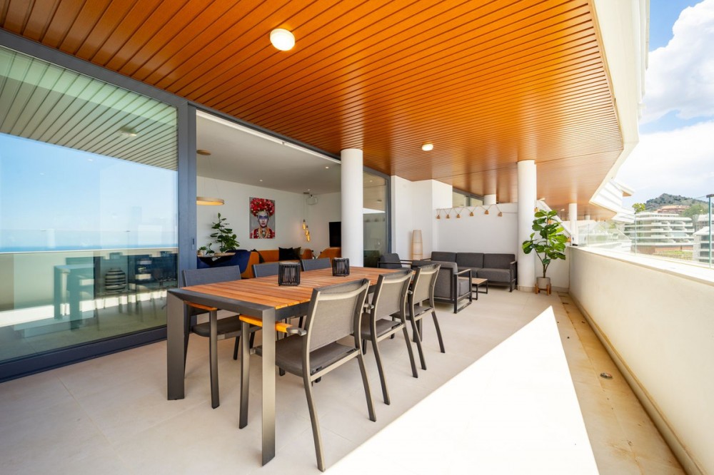 - Probably the best sea view in Higueron!. This new-build, fully furnished and ready-to-use apartment is located in the award winning, Higueron West residential development. From its majestic location elevated 200 m above sea level this stunning apartment offer a breathtaking, uninterrupted panoramic sea view and view of Fuengirola Bay and sky line. As you enter the front door of the apartment your focus is instantly drawn to the view of the Mediterranean sea which is visible from when you first open the front door. You are then drawn to the open plan living space with its fully fitted kitchen. The wide living space offer floor-to-ceiling windows which can me moved to the side and the living space become one with, the just as wide and generous, terrace where only the sea & sky are the limits. The bedrooms are conveniently situated at the back of the living space and consists of a spacious and private master bedroom with a walk-in closet and integrated master bath room. The apartment also offer a large guest- bedroom and bathroom. Both bedrooms offer mountain views. The position- and the view of this apartment leaves you with a sensation of being in a top-of-the-world location which makes you want to come back for more... Higueron West is an innovative- and sustainable community located in the heart of the Costa del Sol. The development has been designed based on a philosophy of creating an exceptional quality of life for its residents, who have ample opportunity to live an active lifestyle, as they have access to a multitude of wellness and sports activities as well as recreational areas. The Higueron West community is an integral part of Higueron Resort which 5 star facilities comprise of an award winning Nagomi Spa, Fitness Center, Paddle, Tennis 5 star restaurants and Beach Club. Immerse your self in all the comfort of the resort-style-living and enjoy your new state-of-the-art apartment with the Mediterranean- sea & sky in the horizon.