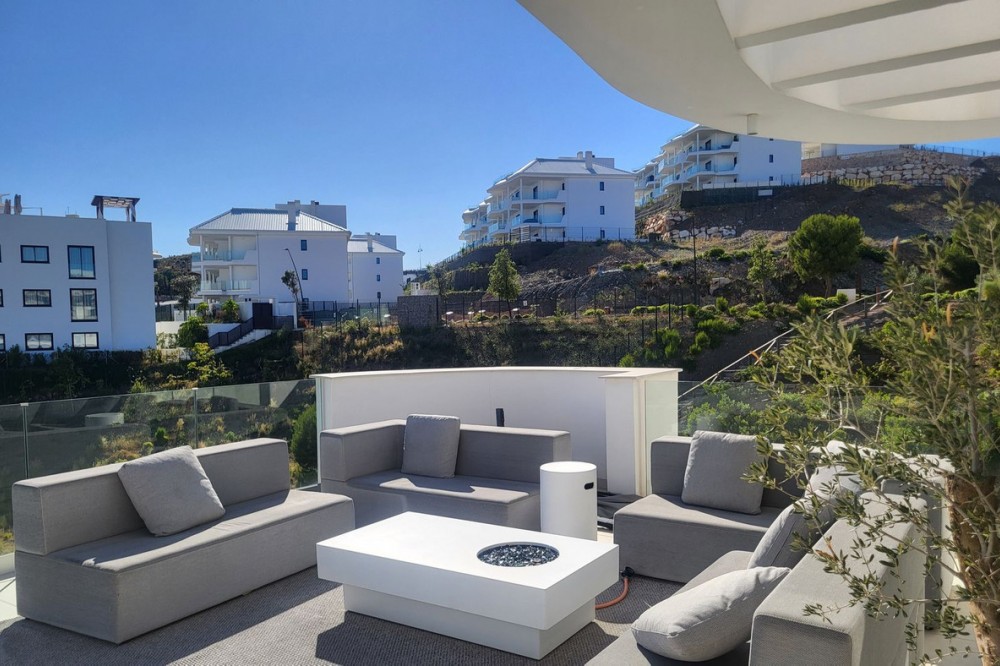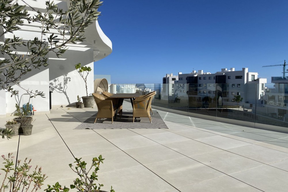 - This remarkable Sky Villa represents a rare opportunity to own a signature residence in one of Higuerón West’s most exclusive locations. With direct private elevator access, this top-floor home offers the ultimate in privacy, luxury, and lifestyle. Inside, the penthouse offers a bright and welcoming atmosphere with a spacious open-plan kitchen and living area that’s filled with natural light. Large sliding glass doors connect directly to the terrace, creating a smooth transition between indoor and outdoor spaces - perfect for relaxing or entertaining. The master bedroom is designed for comfort and privacy, featuring a walk-in wardrobe and a modern en-suite bathroom. Two additional bedrooms provide plenty of space for family, guests, or a home office, along with a stylish guest bathroom and a convenient separate guest toilet. High-quality finishes, underfloor heating, and climate control throughout the apartment ensure year-round comfort and add to the easy, modern lifestyle this home offers. Positioned to capture panoramic views of the Mediterranean, the property overlooks the lush greenbelt and enjoys all-day sun from its generous southwest-facing terrace. The seamless flow between indoor and outdoor spaces makes it perfect for entertaining or simply relaxing in complete serenity. Beyond the apartment itself, Higuerón West offers an unmatched lifestyle. Residents enjoy landscaped gardens, pools, children’s play areas, and even pet-friendly zones - all within a secure, gated community. Just moments away lies the exclusive Higuerón Resort, featuring an award-winning spa, tennis and paddle courts, two indoor pools, and a full spectrum of wellness and fitness facilities. This property also includes: • 2 private underground parking spaces • Large storage room Located within 20 minutes from Marbella and Málaga Airport, the development offers excellent connectivity to top beaches, golf courses, and vibrant cultural attractions.