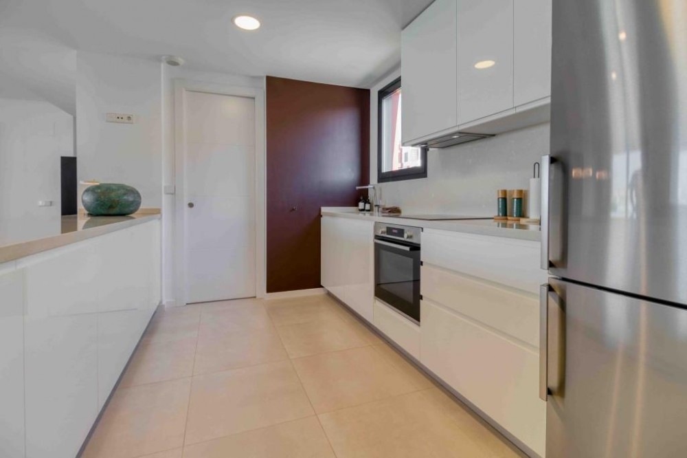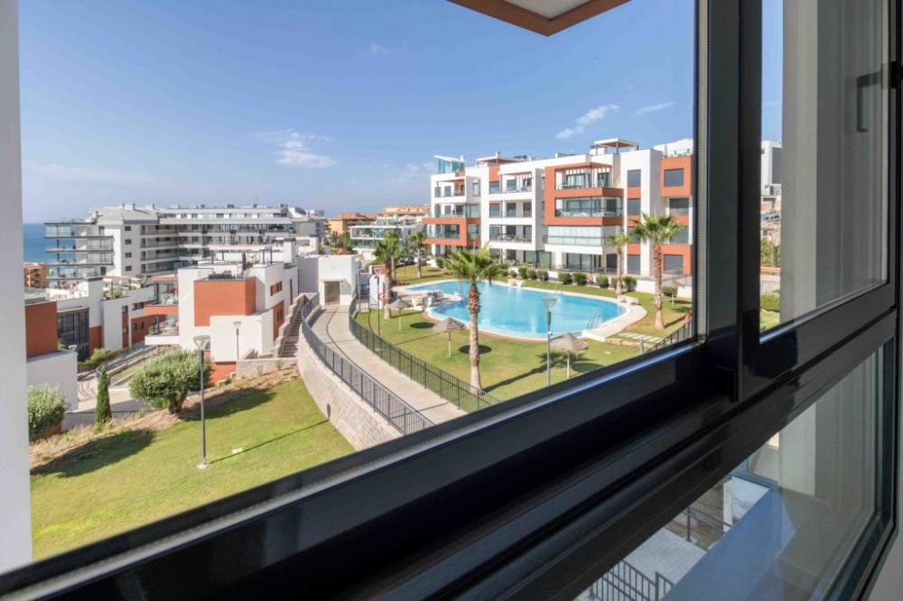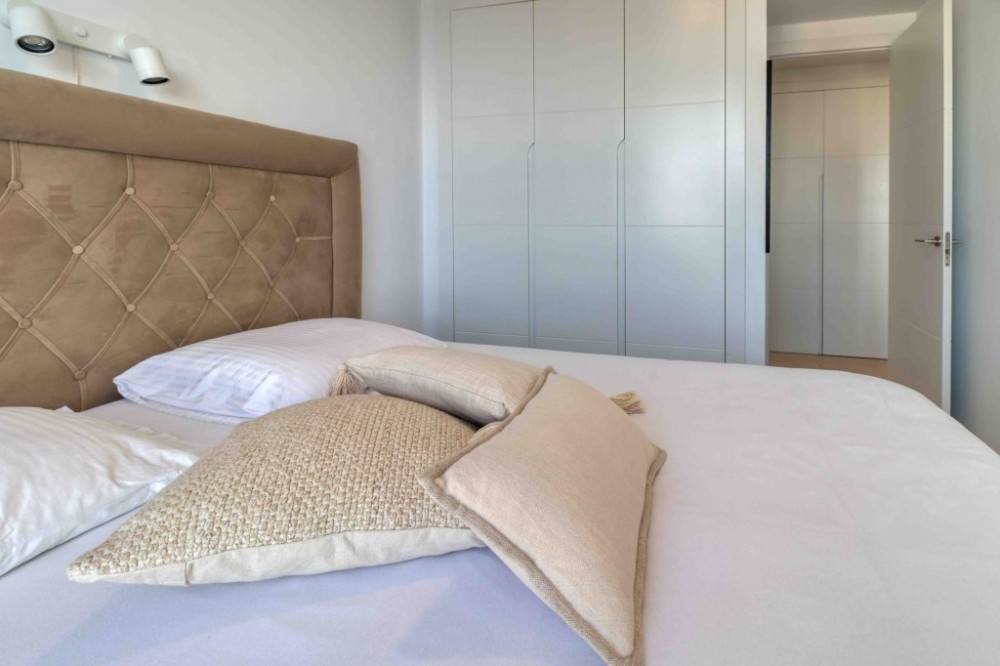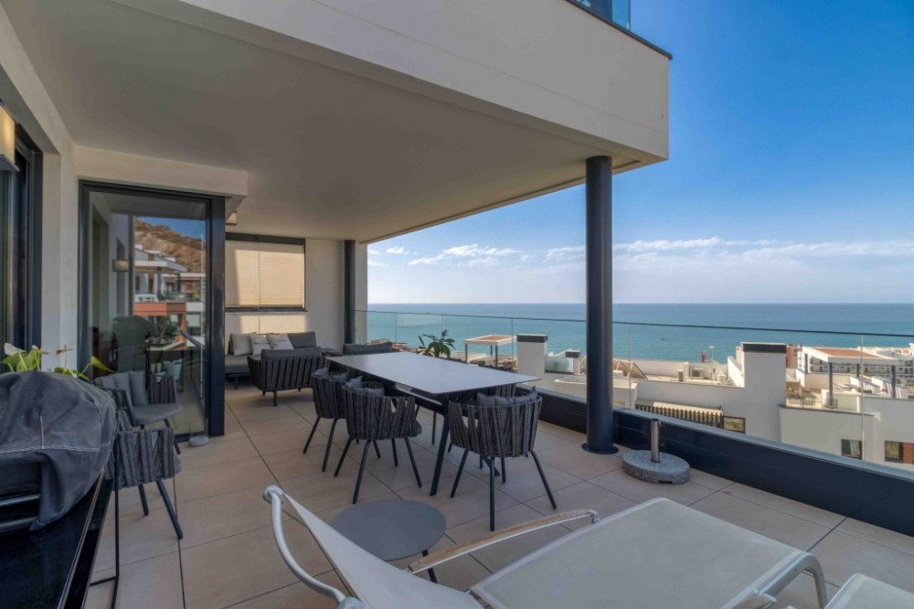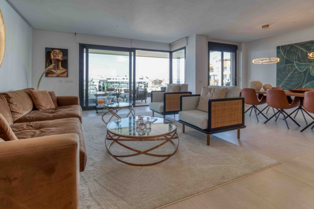 - This charming apartment is located in a highly desirable area, just a short walk from both the beach and a variety of local restaurants – perfect for those seeking comfort and convenience in one. Originally designed with four bedrooms, one of the rooms has been opened up and incorporated into the spacious and bright living room, creating an open-plan feel. However, it can easily be converted back into a fourth bedroom if desired. The apartment also features: Two bathrooms A functional American-style kitchen A large terrace with beautiful sea views Private parking A convenient storage room The property enjoys plenty of natural light, a smart layout, and is ideal as a permanent home, holiday getaway, or investment. At a glance: • Originally 4 bedrooms – easy to convert back • 2 bathrooms • Spacious living room and American kitchen • Large terrace with sea views • Private parking • Storage room • Walking distance to beach and restaurants Contact us today to arrange a viewing – this apartment offers flexibility, location, and views all in one.
