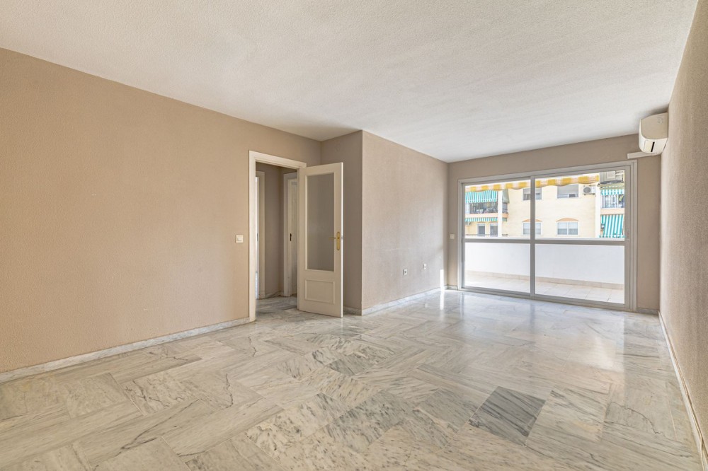 - If you are looking for a property between the centre of Fuengirola and the picturesque neighbourhood of Los Boliches, this is your opportunity! Just a few minutes' walk from the beach, surrounded by all kinds of services, supermarkets, restaurants, pharmacies, etc., with the local train station just a few metres away and quick access to the A-7 motorway, making it perfect for both living and enjoying holidays. East facing, although it also receives some southern light, and being on a high floor, the property receives excellent natural light throughout the day. Of particular note is the large terrace, ideal for enjoying breakfast in the sun or relaxing outdoors. The flat currently has: a spacious entrance hall, separate kitchen with utility room, 2 bedrooms, 1 bathroom with shower and a bright, good-sized living room with direct access to the fantastic terrace. With a small renovation and update project, this flat can be transformed into the modern and functional apartment that everyone desires. The complex has a communal swimming pool surrounded by a large solarium area with sun loungers. Ideal as a primary residence or second holiday home. Don't miss this opportunity to live or invest in one of the most sought-after areas of Fuengirola!