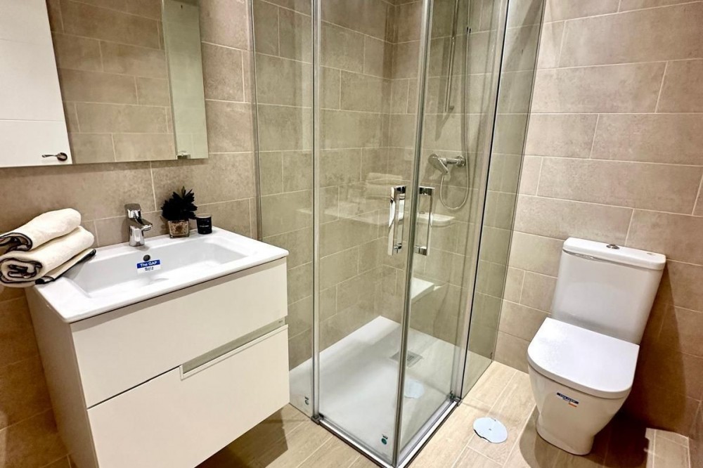 - Brand-New Apartment in Fuengirola – 2 Bedrooms, 2 Bathrooms Located on the second floor, this apartment features approximately 70 m² of usable space and 93 m² of built area. It includes a south-facing 5 m² front terrace, accessible from the living-dining room, and a fully equipped open-plan kitchen. One of the two bathrooms is en suite. Discover this newly built apartment, designed with high-quality materials to ensure maximum comfort. Enjoy excellent soundproofing in walls and ceilings, underfloor heating in the main bathroom, and an efficient aerothermal system. The building also boasts an A-rated energy certificate, ensuring sustainability and energy savings. Includes a fully equipped kitchen and built-in wardrobes. Strategic Location in Fuengirola – La Calerita Area Edificio Real is situated in a privileged location, offering quick access to all essential services and points of interest: ✔ Less than 2 minutes from the highway, ensuring easy connections throughout the Costa del Sol. ✔ Only a 3-minute walk from the Fairground, the center of events and activities. ✔ Schools and institutes within walking distance, ensuring a close and accessible educational environment. ✔ La Loma Park nearby, perfect for walks and relaxation. ✔ Less than 10 minutes from the beach, allowing you to enjoy the sea whenever you like. Fuengirola is the perfect place for those looking for a family-friendly and peaceful environment, while still enjoying a variety of leisure, sports, and gastronomy options in the heart of the Costa del Sol. Don’t miss the opportunity to move into this magnificent apartment in one of the most attractive areas of the Costa del Sol. Optional parking space and storage room available in the same building. Check unit availability. (*) Prices do not include 10% VAT. Subject to change without prior notice.