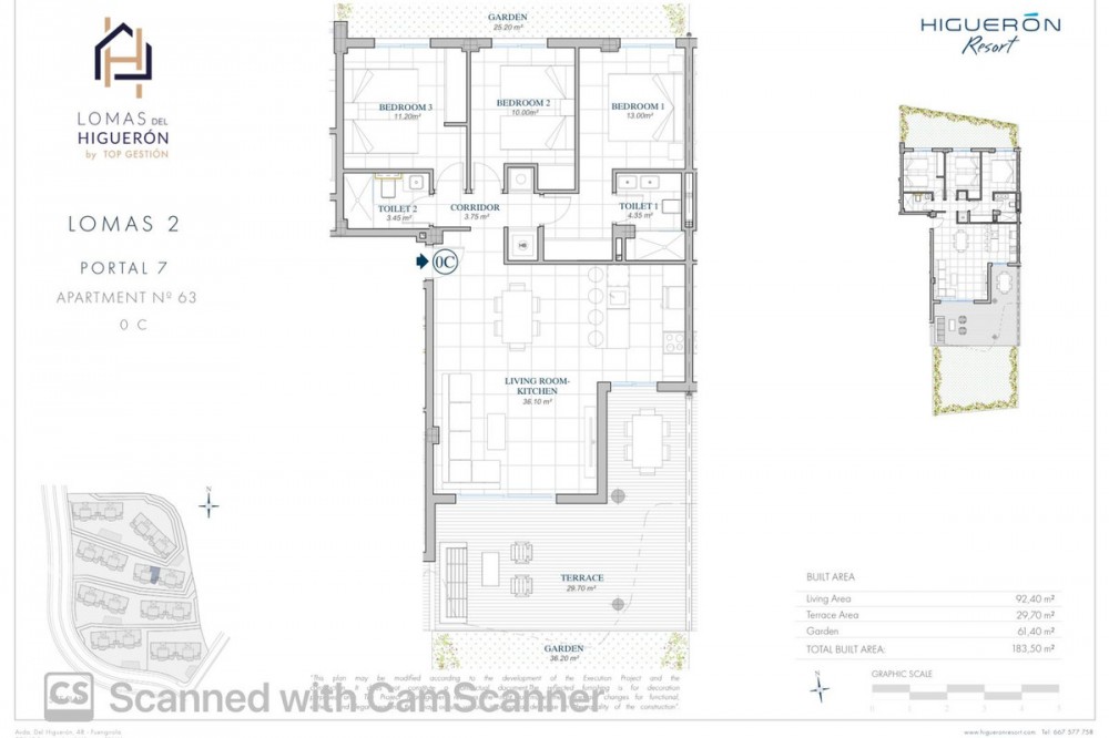- For Sale: Ground Floor 3-Bedroom Apartment with Garden & Terrace in Las Lomas 2 del Higuerón - Fuengirola Discover a beautifully designed ground floor apartment located in the prestigious Las Lomas del Higuerón. With 3 bedrooms, 2 bathrooms, a 60 m² private garden, and a 30 m² covered terrace, this home offers the perfect balance of indoor comfort and outdoor Mediterranean living. Modern Layout: Bright and functional design with 3 spacious bedrooms and 2 bathrooms, including a master suite, plus open-plan living areas filled with natural light. Fully fitted kitchen with high-end appliances, underfloor heating in both bathrooms, built-in wardrobes, two private parking spaces and a storage room. Secure gated complex with landscaped gardens, several swimming pools, wellness and fitness areas, co-working space, and concierge services. Prime Location: Just minutes from Carvajal beach, local shops and restaurants. Excellent connectivity: 5 minutes to Fuengirola, 15 minutes to Málaga Airport, and 20 minutes to Marbella.
