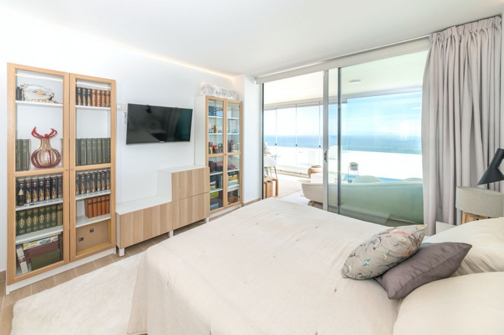 - Exclusive Luxury Apartment with Panoramic Sea Views in El Higuerón Este, Fuengirola Discover the Mediterranean lifestyle in this magnificent 3-bedroom, 2-bathroom apartment, located in the exclusive area of El Higuerón. This property offers exceptional panoramic views of the Mediterranean Sea that you can enjoy from its spacious 32 m² terrace. Furthermore, the sea view will always remain unobstructed, as no construction is permitted in front, guaranteeing a magnificent and permanent perspective. The apartment is located in the prestigious MED ONE residence, a luxury complex with impressive amenities. Residents can enjoy two community swimming pools, a fully equipped gym, Finnish sauna, padel courts, tropical gardens, coworking space, all with 24-hour security service. The property has been carefully designed with high-end finishes. The 3 bedrooms are very bright, the bathrooms feature underfloor heating, and the modern kitchen is fully equipped. The apartment includes central heating and air conditioning in all rooms. The location in El Higuerón is unbeatable: exclusive residential area just 5 minutes walk from the beach, with all necessary services within reach - schools, supermarkets, restaurants and excellent transport links. The property is completed with two included parking spaces and a large storage room. Community fees are €220/month, the IBI (property tax) amounts to €680/year and the garbage tax is €96/year. Perfect for those looking to enjoy the best climate of the Costa del Sol in a luxury property ready to move into. Don't miss this unique opportunity in El Higuerón!