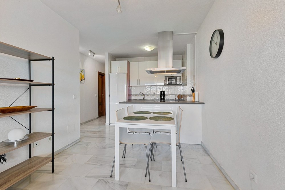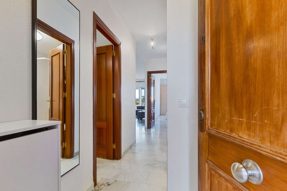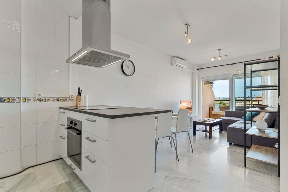 - Introducing a compact 2 bedroom and 2 bathroom apartment in popular Los Pacos area. The location is excellent and the area boasts with peaceful living and many schools and services. The orientation is perfect with almost all day sunshine and afternoon sun. Great views to mountain and to Los Pacos with balcony full on sunlight. The kitchen has been opened to living room and renovated 5 years ago and the house appliances are not more than one year old. Living room has Air condicion and in both bedrooms are equipped with new Ventilators. Not too many square meters but perfect layout and very good apartment for small family or couples since it has two bathrooms as well. The rental earnings also to to investors are guaranteed with families in the winter and short term rentals in the summer. Book your viewings now!