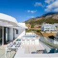 - Exclusive Luxury Penthouse with Panoramic Mediterranean Views – 269 m² Discover a truly unique gem on the Costa del Sol. This stunning 269 m² penthouse, built in 2023, perfectly combines contemporary design, elegance, and breathtaking Mediterranean views. Set within a private gated community with 24-hour security, it offers an atmosphere of privacy, exclusivity, and comfort. Occupying the entire top floor of the building and holding a tourist license, this property is an ideal investment—whether as a private residence or a profitable rental opportunity. The elegant, light-filled interior features three spacious bedrooms, including a master suite, and an additional independent bathroom. Direct access from the underground parking to the apartment ensures both comfort and security. The spacious living area with underfloor heating opens onto a spectacular private terrace—a true Mediterranean oasis. Enjoy a private pool, sun loungers, cozy sofas, an outdoor dining area, and a barbecue, all enhanced by a Sonos sound system to create the perfect ambiance. The terrace, equipped with two electric awnings, offers panoramic sea views that can be enjoyed from sunrise to sunset. The community also features two saltwater pools for residents’ use. The modern open-plan kitchen is fully equipped with a wine fridge, ice maker, osmosis water system, and high-end appliances, blending functionality and design in a bright, welcoming space—perfect for cooking and entertaining. This penthouse embodies the perfect balance between exclusivity, comfort, and investment potential. Whether as a main residence, holiday home, or rental property, its prime location, modern architecture, and tourist license make it an exceptional opportunity on the Costa del Sol. *Furniture not included in the final price.