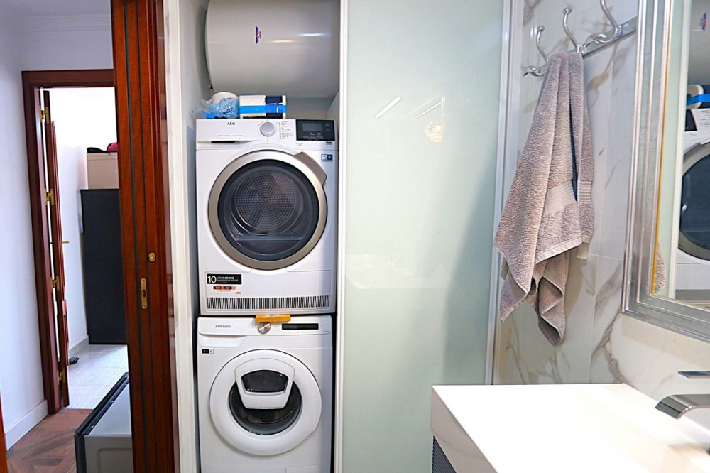 - Middle Floor Apartment, Fuengirola, Costa del Sol. 3 Bedrooms, 2 Bathrooms, Built 101 m², Terrace 20 m². Setting : Town, Close To Port, Close To Shops, Close To Schools. Orientation : South. Condition : Excellent. Climate Control : Air Conditioning, Hot A/C, Cold A/C. Views : Street. Features : Covered Terrace, Lift, Fitted Wardrobes, Near Transport, Private Terrace, WiFi, Sauna, Ensuite Bathroom, Access for people with reduced mobility, Jacuzzi, Double Glazing, Fiber Optic. Furniture : Fully Furnished. Kitchen : Fully Fitted. Security : Entry Phone, 24 Hour Security. Parking : Street. Utilities : Electricity, Telephone. Category : Holiday Homes, Investment, Contemporary.