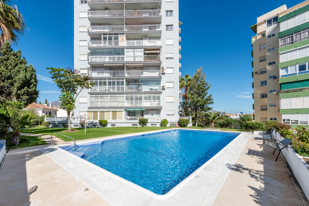 - Looking for a 3-bedroom apartment in the centre of Fuengirola? Welcome to this beautifully renovated apartment located near Fuengirola’s old bullring. The entire property has been refurbished with high-quality materials, creating a bright and airy atmosphere. New AC units are installed in all rooms, including the living room. Situated on the 7th floor, the apartment offers spectacular views. As you enter, you’ll find the tastefully renovated kitchen to your left, which is connected to a utility room designed in the same style. Straight ahead is the spacious and open living area with stunning views over the southwest part of Fuengirola and the sea. A few steps further in, you reach the bedroom area on the left. There are three well-sized bedrooms; the master bedroom features an en-suite bathroom, while the other two bedrooms share a second bathroom. Stretching across both the master bedroom and the living room is a generously sized southwest-facing terrace where you can enjoy beautiful sunsets. The community is gated and offers communal parking as well as a garden with a swimming pool.