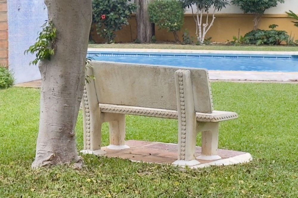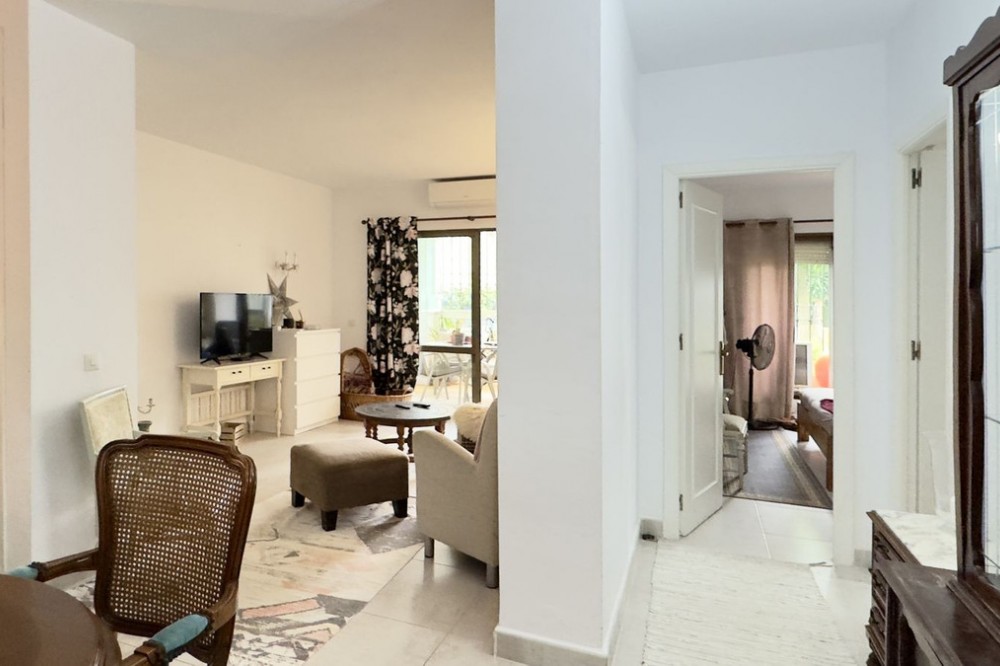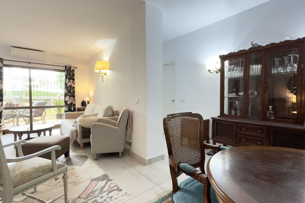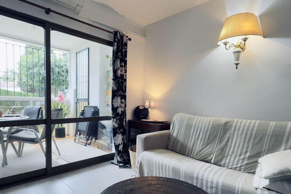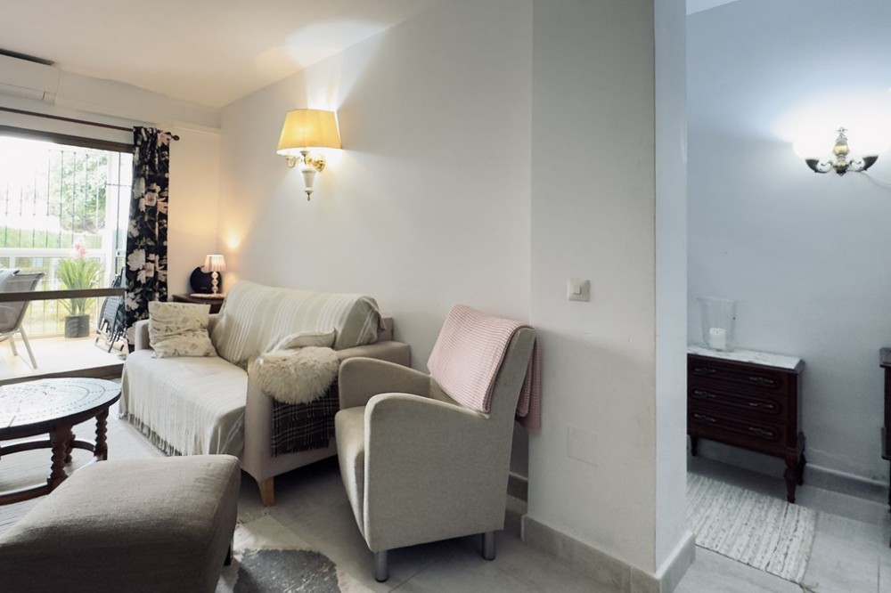 - Sophisticated One-Bedroom Residence in Prestigious Community in Fuengirola Discover refined living in this exceptionally spacious and luminous ground-floor apartment, ideally positioned in the heart of Fuengirola within the highly coveted community. Renowned for its beautifully landscaped grounds, serene atmosphere, and superb central location, the property offers an unparalleled lifestyle just steps from all amenities and excellent transport links. This elegant residence boasts an expansive living and dining area that flows seamlessly onto a private terrace with tranquil views over the community’s pristine swimming pool. The well-proportioned bedroom, large bathroom, and separate fully fitted kitchen with an adjoining utility room add to the sense of comfort and space. Though officially a one-bedroom home, the property feels impressively generous in scale. With subtle updates and a refined renovation to the kitchen and bathroom, this property can easily be transformed into a truly luxurious sanctuary in one of Fuengirola’s most exclusive enclaves — a rare opportunity in an unbeatable location.