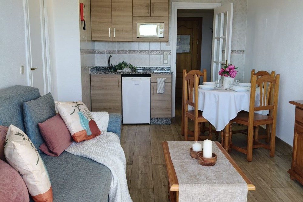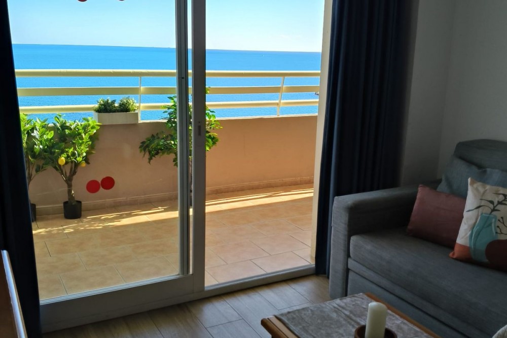 - Middle Floor Apartment, Fuengirola, Costa del Sol. 1 Bedroom, 1 Bathroom, Built 51 m², Terrace 8 m². Setting : Beachfront, Town, Commercial Area, Port, Close To Shops, Close To Sea, Close To Town, Close To Schools, Urbanisation, Front Line Beach Complex. Orientation : South East. Condition : Excellent. Pool : Communal. Climate Control : Air Conditioning. Views : Sea, Beach, Panoramic, Street. Features : Covered Terrace, Lift, Fitted Wardrobes, Near Transport, Private Terrace, WiFi, Access for people with reduced mobility, 24 Hour Reception, Restaurant On Site, Courtesy Bus, Near Church. Furniture : Part Furnished. Kitchen : Fully Fitted. Security : Gated Complex, 24 Hour Security. Parking : Street. Utilities : Electricity, Drinkable Water. Category : Beachfront, Resale.