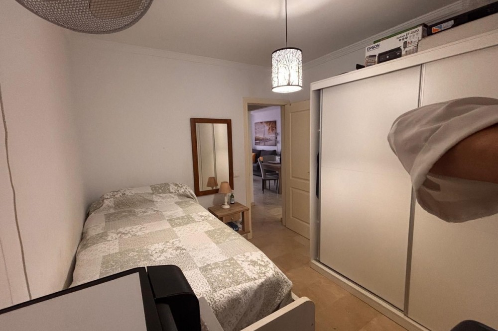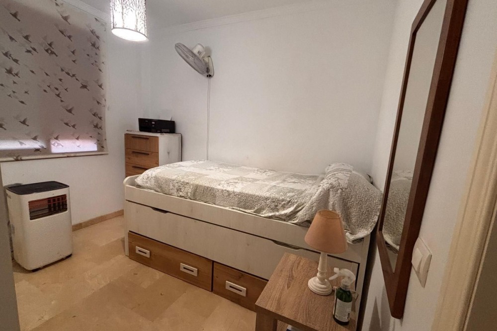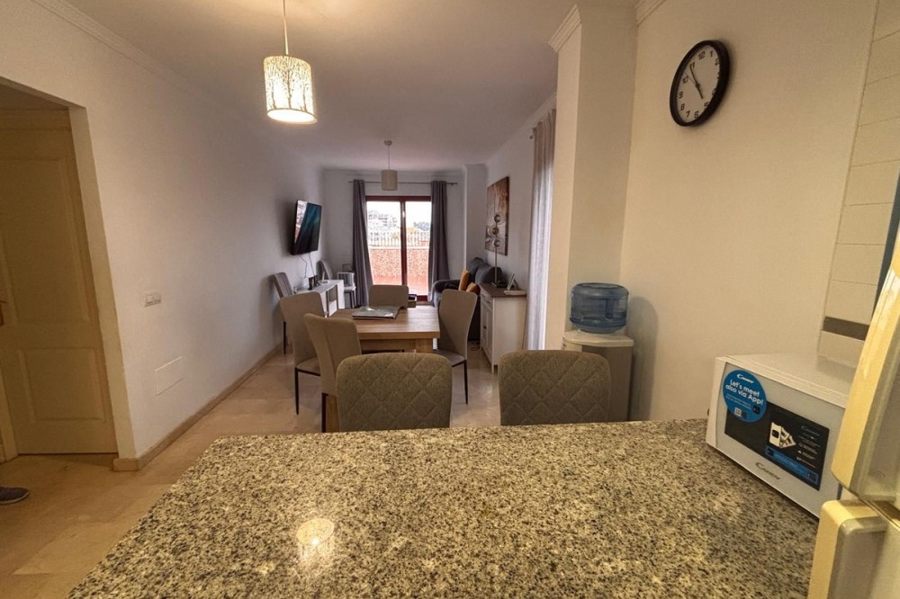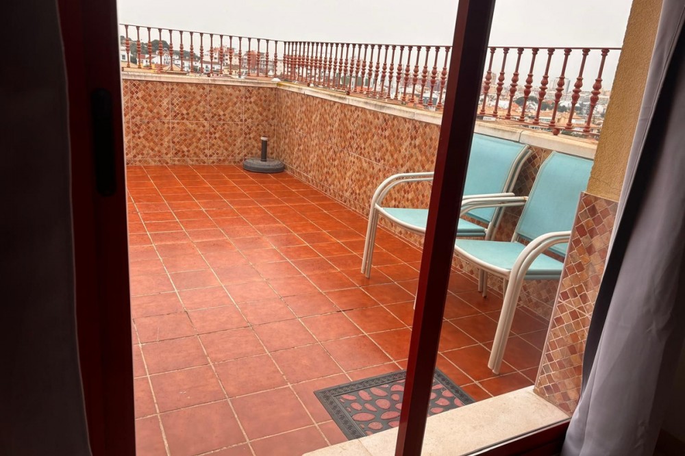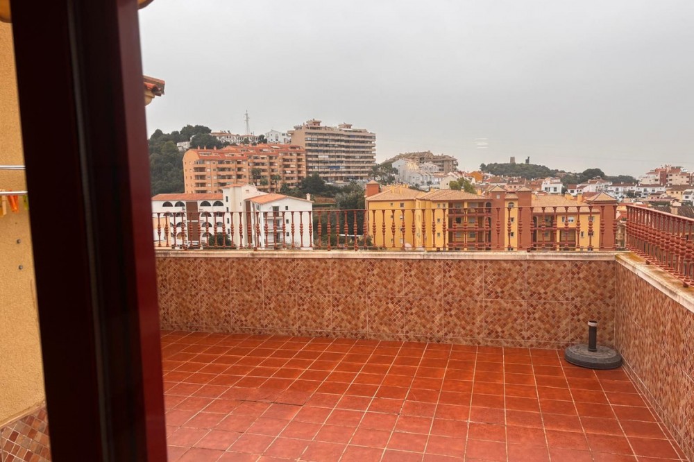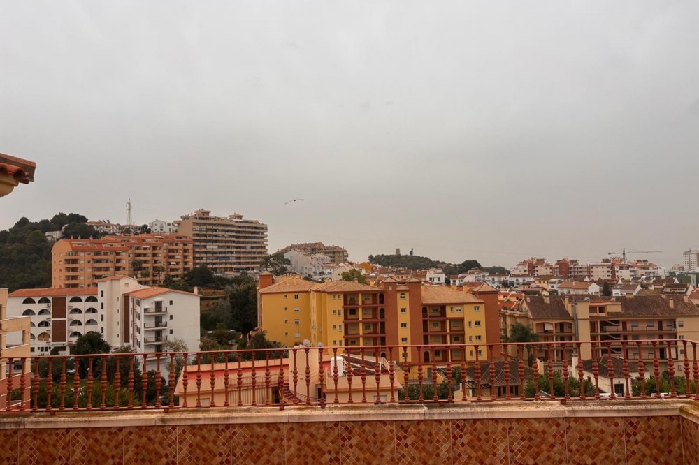 - Opportunity! Penthouse with large terrace and panoramic views from east to west in Fuengirola! Tourist license in place! 7st and last floor apartment with a built area of 107 sqm and a terrace of 30 sqm. Including 1 underground parking space and fully equipped and furnished. Distributed in entrance hallway leading to an open plan kitchen leading to the living room and outgoing to the south facing terrace. 2 bedrooms and 2 bathrooms, one en-suite to the master bedroom. This gated urbanisation is located in one of Fuengirola's most wanted residential areas - Los Pacos. In town but in quiet surrounding. The terrace is offering amazing views torwards to town up to the sea. Community gardens with swimming pool. Features: creme marble flooring, double glazing, security entrance door, A/C, elevator, garage, furnished. Entrance without steps. In walking distance to schools, supermarket and shops, restaurants. Busstop closeby. 12 minutes to Los Boliches and the beaches and center of Fuengirola. 20 minutes drive to the airport of Malaga. The local banks are offering up to 70% mortgage of purchase price. A perfect home or for a great rental business.