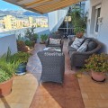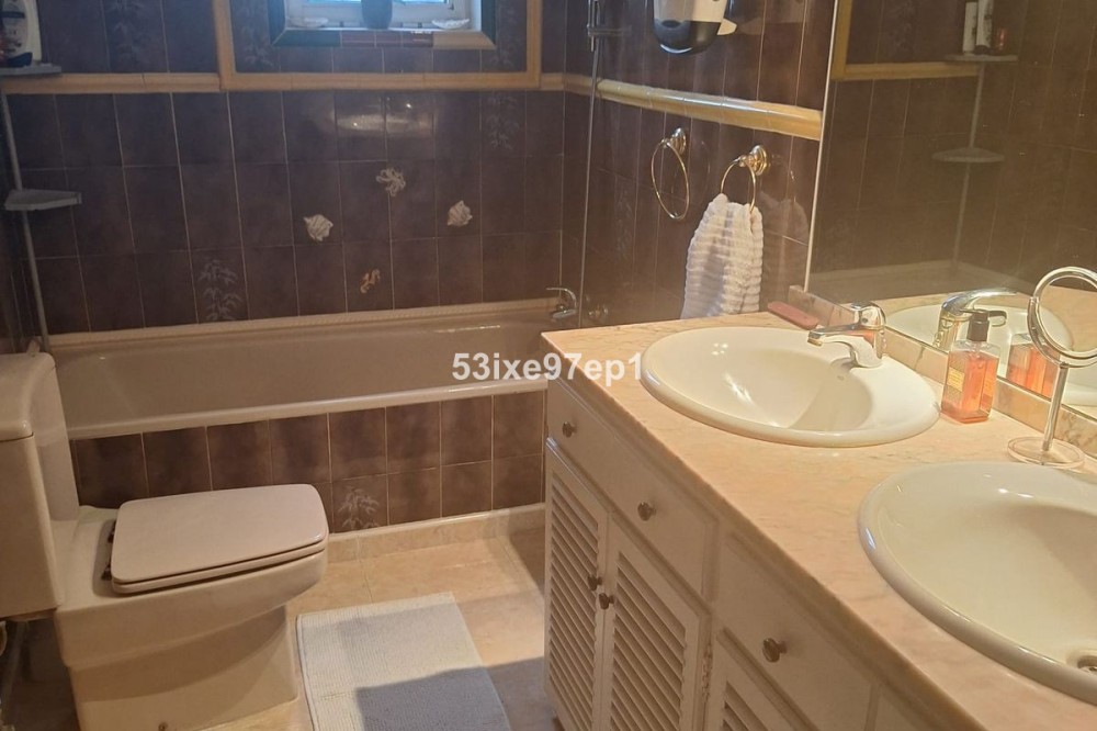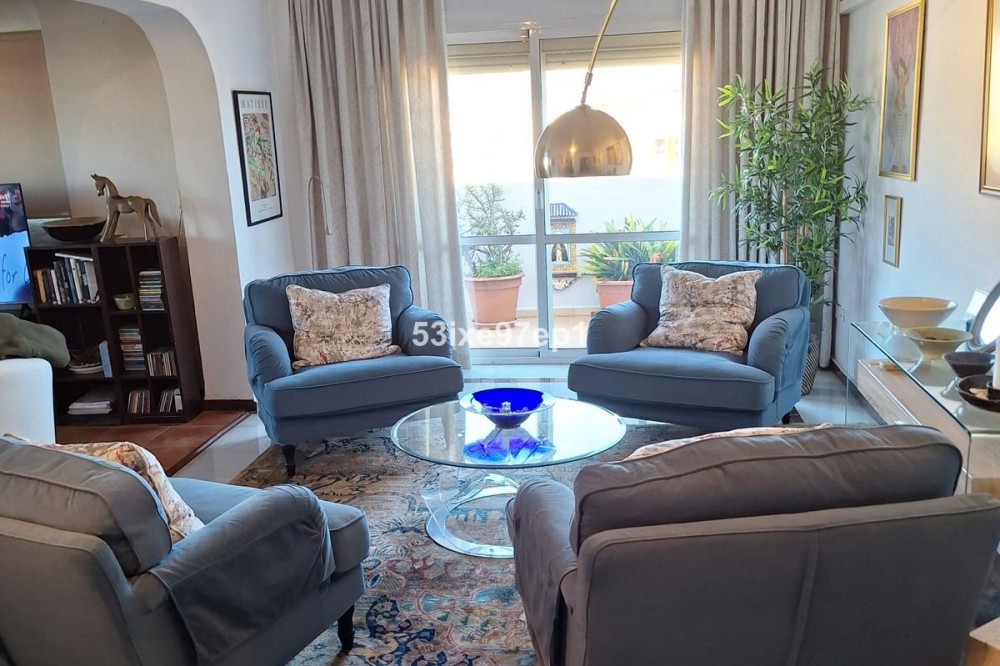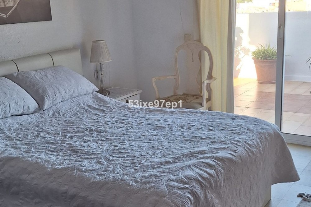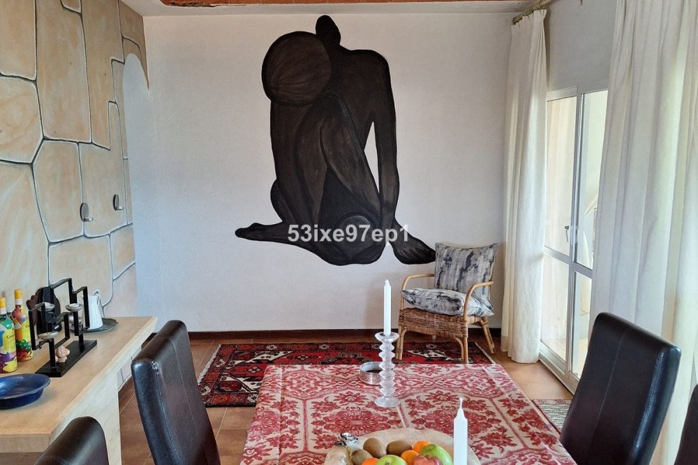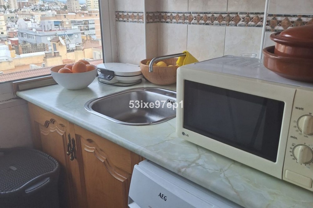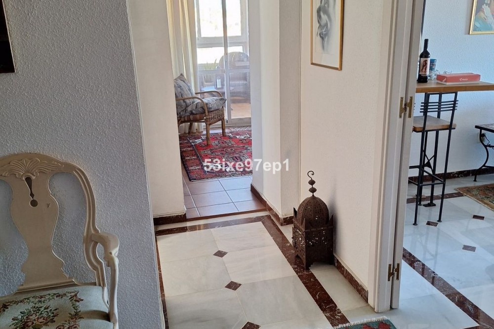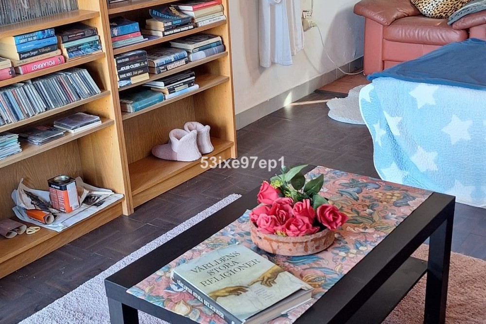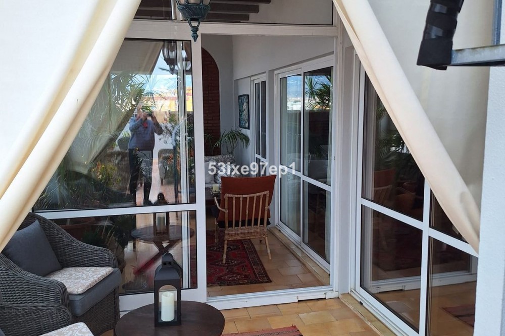 - Welcome to this fantastic and bright flagship apartment with views high above all of Fuengirola! We first enter a spacious hall and directly to the right is the kitchen with a separate area for a washing machine and extra storage. From the hall we then enter the living room with access to a terrace where you can look out over the roof ridges of Fuengirola down to the sea. Next to the living room is a spacious dining area with space for a large dining table and several chairs and an open fireplace. From the dining area we can go to another smaller living room that is glazed in. Then we come out onto the large terrace which, in addition to fantastic views of the mountains, also offers plenty of space for a seating area and lots of pots with greenery. From the hall we can also go to the left and there we find the three bedrooms, one of which has an ensuite bathroom. Two of the bedrooms have their own small terraces. Out on the terrace there is a staircase up to the roof where there is a small house that can be used as a music room, library or why not a youth room? There is also space for sun loungers here. There are also solar panels installed on the roof that heat the water in the apartment. The apartment has a private parking space in the garage. The elevator goes directly from the apartment on the 7th floor down to the garage. The property is very well maintained and the entire house has recently been repainted. It is located in a very nice Spanish neighborhood with smaller shops for meat, bread, tobacco, etc. Within a few blocks there are also a couple of larger grocery stores. It is walking distance down to the beach and the train station, which you can reach in 10-15 minutes.