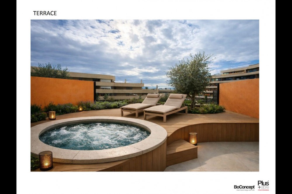 - Exclusive apartment villa located in the prestigious South Residences, Higuerón Resort in Fuengirola, offering a refined balance of contemporary design, privacy, and resort-style living on the Costa del Sol. This distinctive 3-bedroom apartment villa enjoys a calm, light-filled atmosphere and spacious open-plan interiors designed for both comfort and elegance, with premium finishes throughout. The living room connects seamlessly to the main bedroom via an elegant sliding glass wall, allowing the space to be fully opened for a generous, modern feel or closed for intimacy when desired. Sliding wall between living room & master bedroom make the living room more spacious. Very bright and sunny. The extended living area flows naturally towards a side terrace with full-height glass, offering open Mediterranean views from multiple angles and creating an exceptional indoor–outdoor living experience. Rich wooden floors combined with natural wood detailing on walls and ceilings add warmth, texture, and a refined architectural character throughout the home. Outdoors, a private jacuzzi provides an intimate sanctuary for relaxation, day or night. Residents benefit from exclusive on-site amenities, including sauna, coworking space, and multiple swimming pools, while the full range of Higuerón Resort facilities is just a 2-minute walk away, offering spa, sports club, fine dining, beach club, and concierge services. Ideal as a permanent residence, second home, or high-end investment, this property represents a rare opportunity within one of the most sought-after gated communities on the Costa del Sol. Optional fully furnished package available, featuring top-quality designer furniture. The buyer may personally select the furniture directly from BoConcept, ensuring a fully customized, turnkey home.