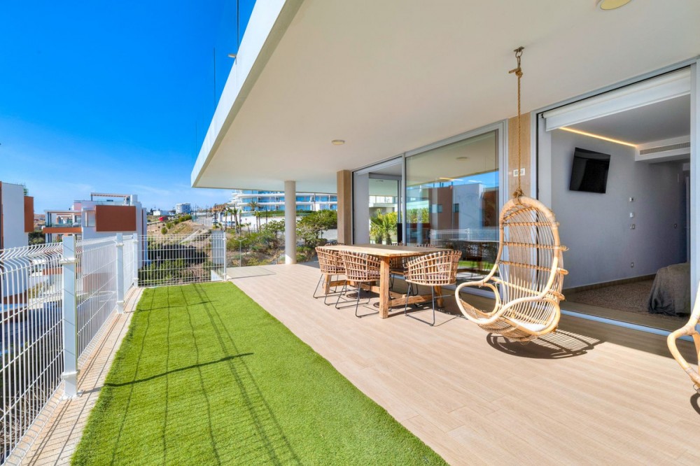 • Superb 3 bedroom corner apartment Med One, el Higuerón, Fuengirola, with turistic licence. Welcome to the Med One Resort Collection apartment, which offers the perfect holiday home in the prestigious area of el Higuerón. This new, bright and superbly furnished three-bedroom landscape apartment is located just 400 meters from the seafront and offers breathtaking views of the Mediterranean Sea, Fuengirola port and beaches. The apartment has individually controlled air conditioning and heating, so whether you are in the heat of summer or the cool of winter, the interior will remain pleasantly warm. The bedrooms and bathrooms have underfloor heating. The master bedroom has its own “en-suite” bathroom with a bathtub, and all bedrooms have spacious beds for two. The apartment has a total of two bathrooms, ensuring comfort even for a larger group. The kitchen is fully equipped and the furniture is negotiable; the boho-style interior design was done by Zoco Homes. The apartment has two adjacent parking spaces and a spacious storage room. The sale also includes four bicycles. The apartment is barrier-free and suitable for people with reduced mobility, as the housing complex has elevators that also take you directly to the swimming pool, which has a pool lift. There is a lot to see and do in the neighborhood - the center of Los Boliches in Fuengirola is only 2.5 kilometers away and the Mercadona grocery store is three kilometers away. The nearest train station is only 200 meters away, so getting around is easy and hassle-free. The Higuerón area also has great sports facilities, such as paddle and tennis courts, as well as a spa and an indoor pool, at the Higuerón Curion Collection by Hilton hotel located in the same area. There is also a shuttle service in the area, so you can get around without a car.